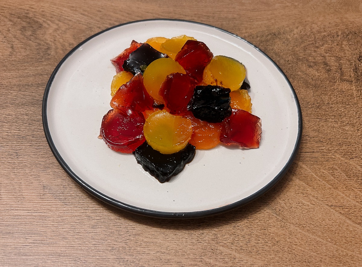 egyszerű hozzávalókból. A zselatin és a szörp kombinációja kellemesen lágy és rugalmas