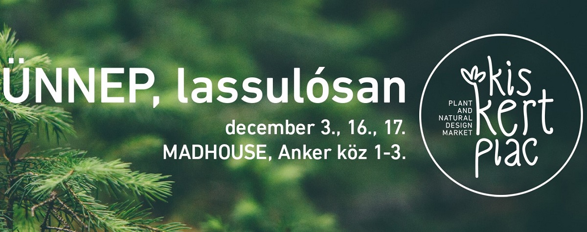 Zöld, örömteli, nyugodt időszakot kívánnak és ugyanilyen ajándékvásárt ígérnek a szervezők, amennyiben a KISKERTPIACOT választják. A természetközeli dizájnkínálaton túl a Madhose séfje szolgáltatja a gasztróélményt.