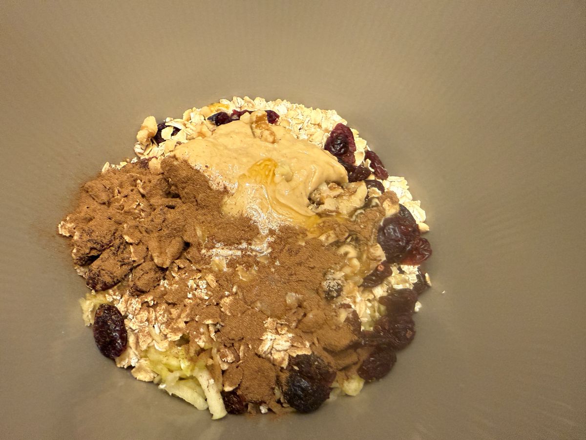 hozzá az almát, a mézet, a magvajat és a vörösáfonyát.