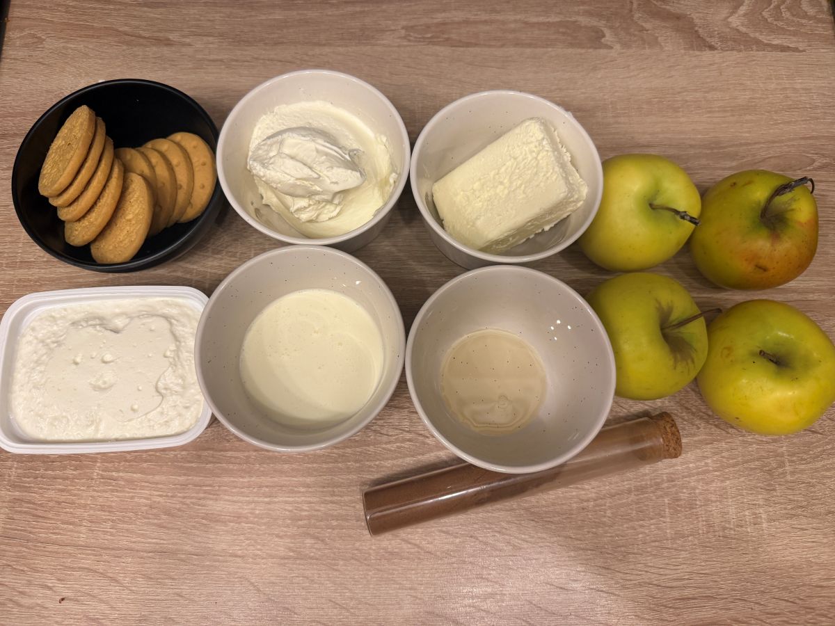 kekszes alapra kanalazz egy vastag réteg túrókrémet. Erre jöjjön az almás