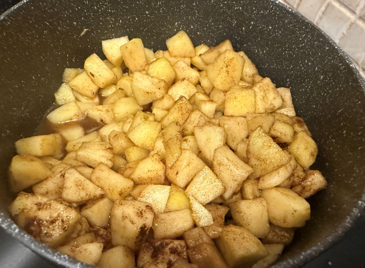 add hozzá a vajat, és várd meg, amíg elolvad. Tedd bele az almát, keverd át.