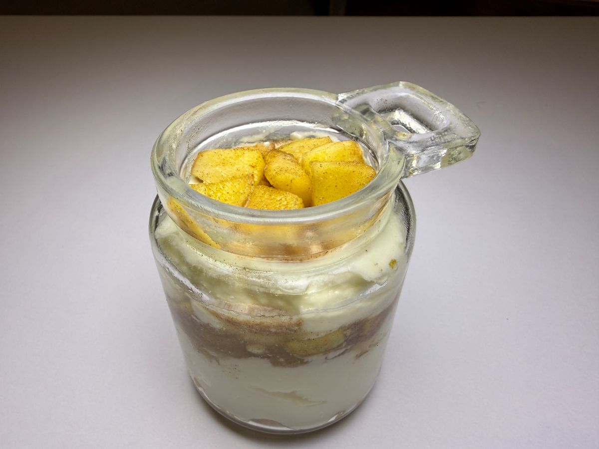 töltelék. Ismét egy réteg túrókrém. Ha magas a pohár, akár még egy almás