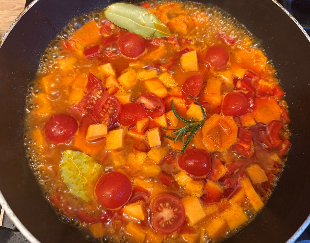 paradicsommal és kb. 1 dl vízzel vagy zöldségalaplével.