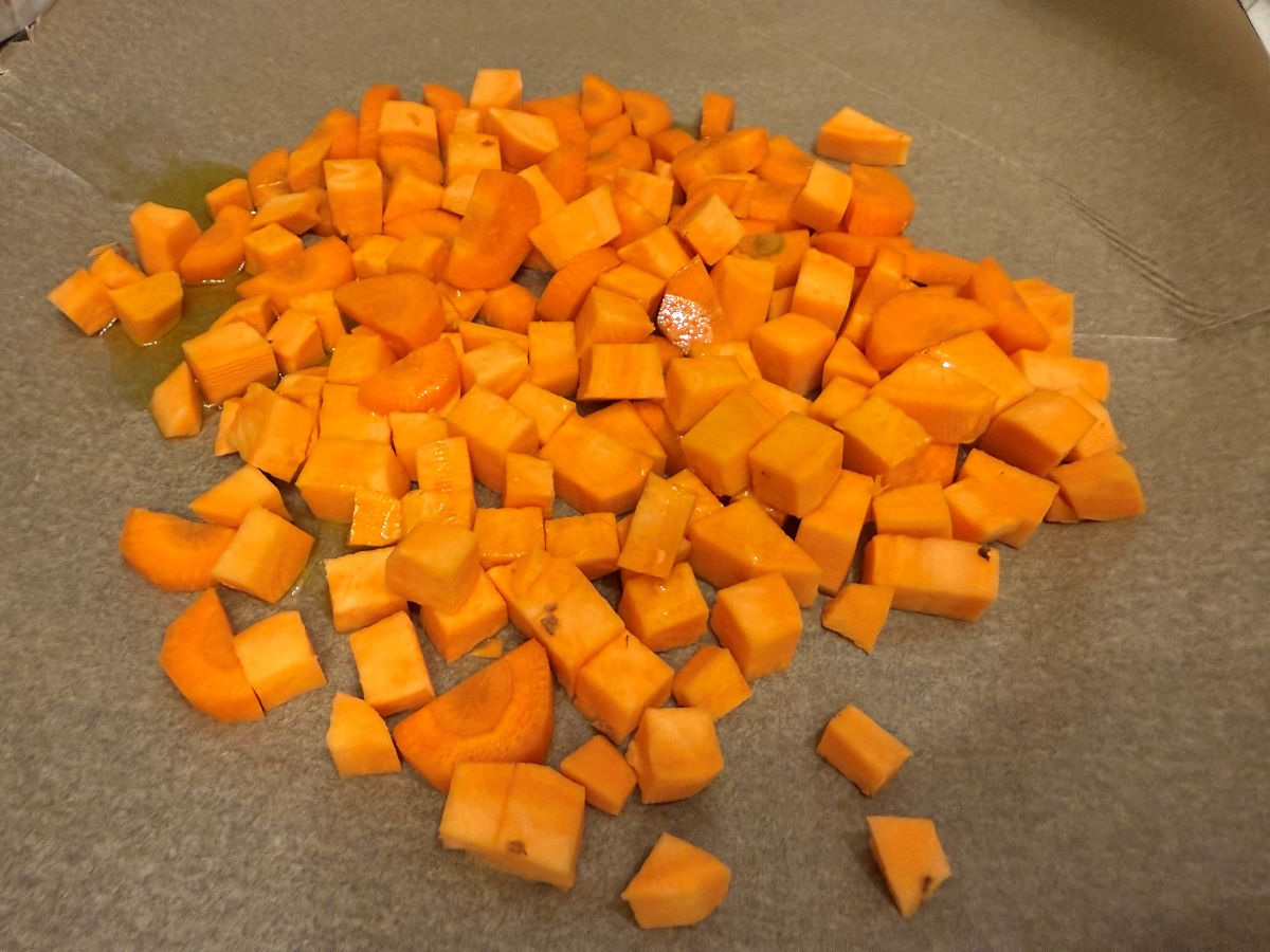 meg az édesburgonyát, majd vágd fel kockákra. Tisztítsd meg a répát, és