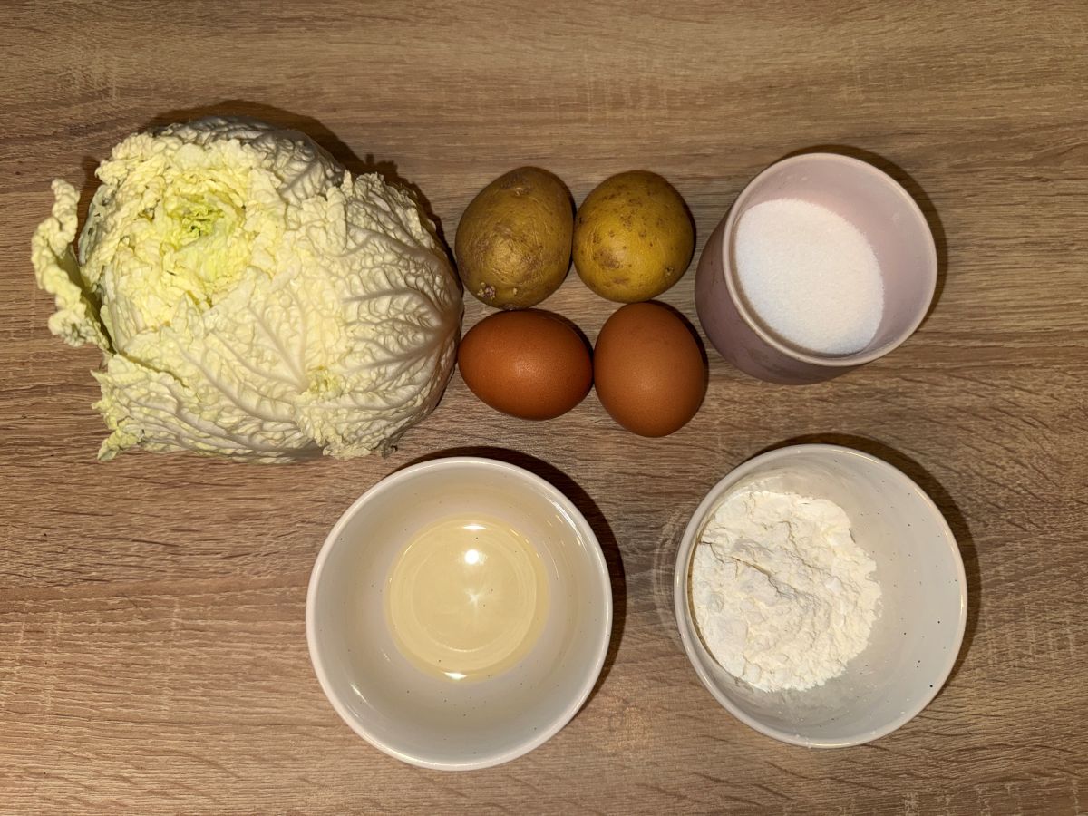 ki. Keverd össze a kelkáposztát, a krumplit, a tojásokat, a lisztet, a fokhagymát