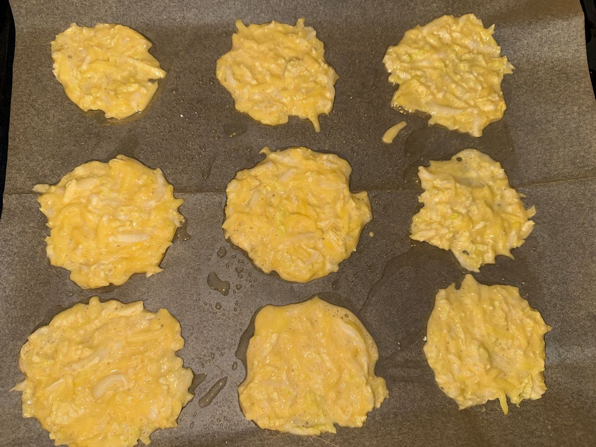 halmozz kis adagokat, lapítsd le őket. Kend meg a tetejüket egy kevés olajjal. Süsd