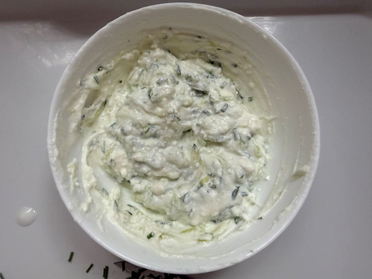 tejfölt/joghurtot, a zúzott fokhagymát, citromlevet és a sót. Keverd bele a