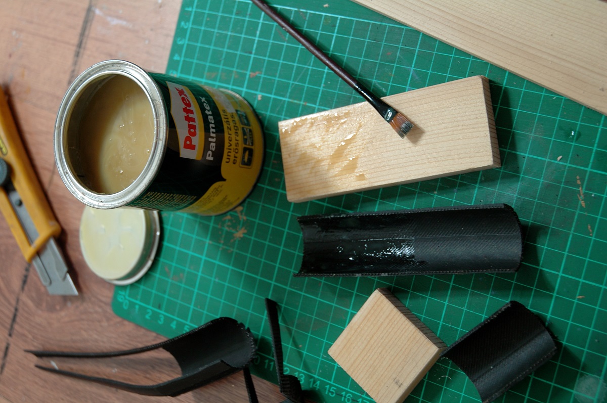 erősragasztót mindkét felületen, majd illesszük össze a gumit a fával. Jól