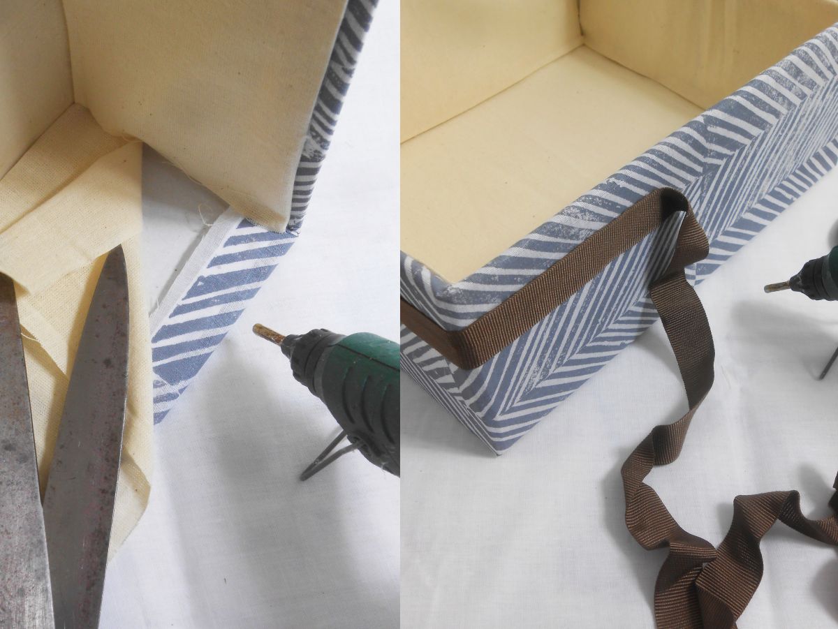 díszítsük a doboz külső szélét. Aki tud varrni az a doboz huzatát elkészítheti