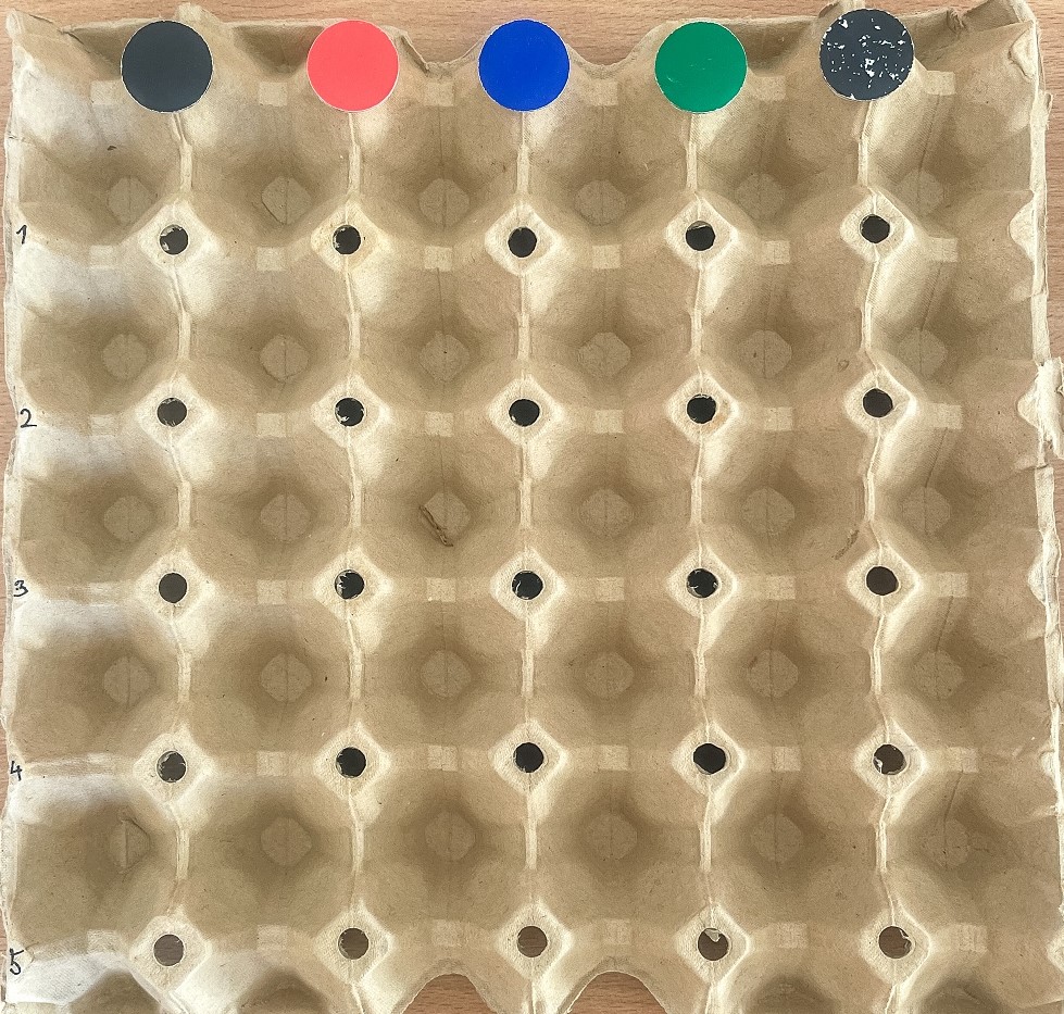 Minden játékosnak szüksége van egy tojástartóra, színes