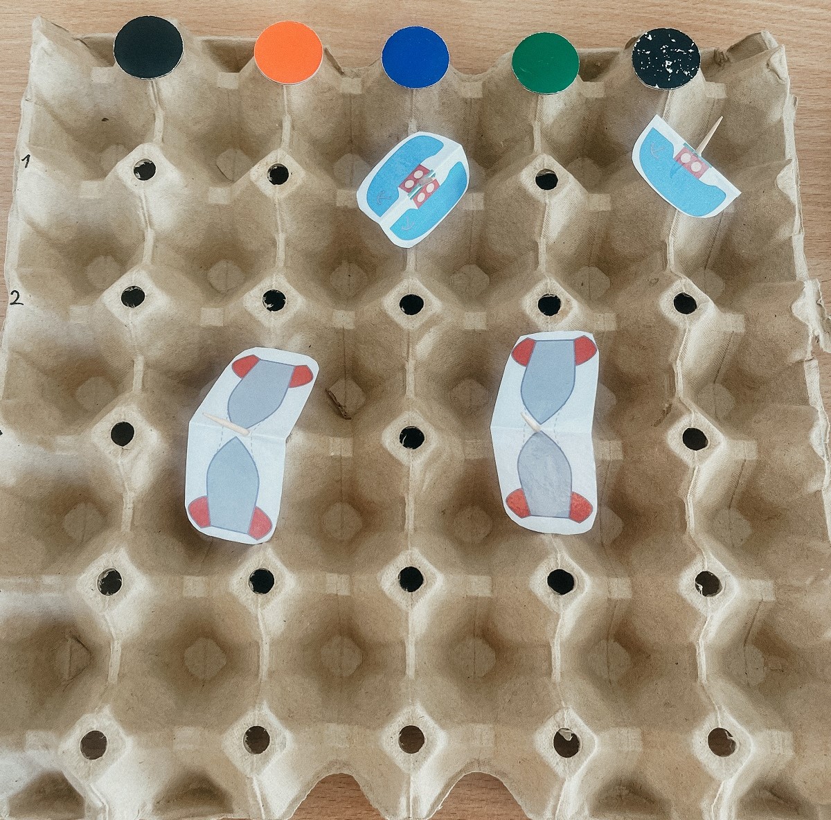 Minden játékos helyezzen el hajókat a saját tojástartójában.