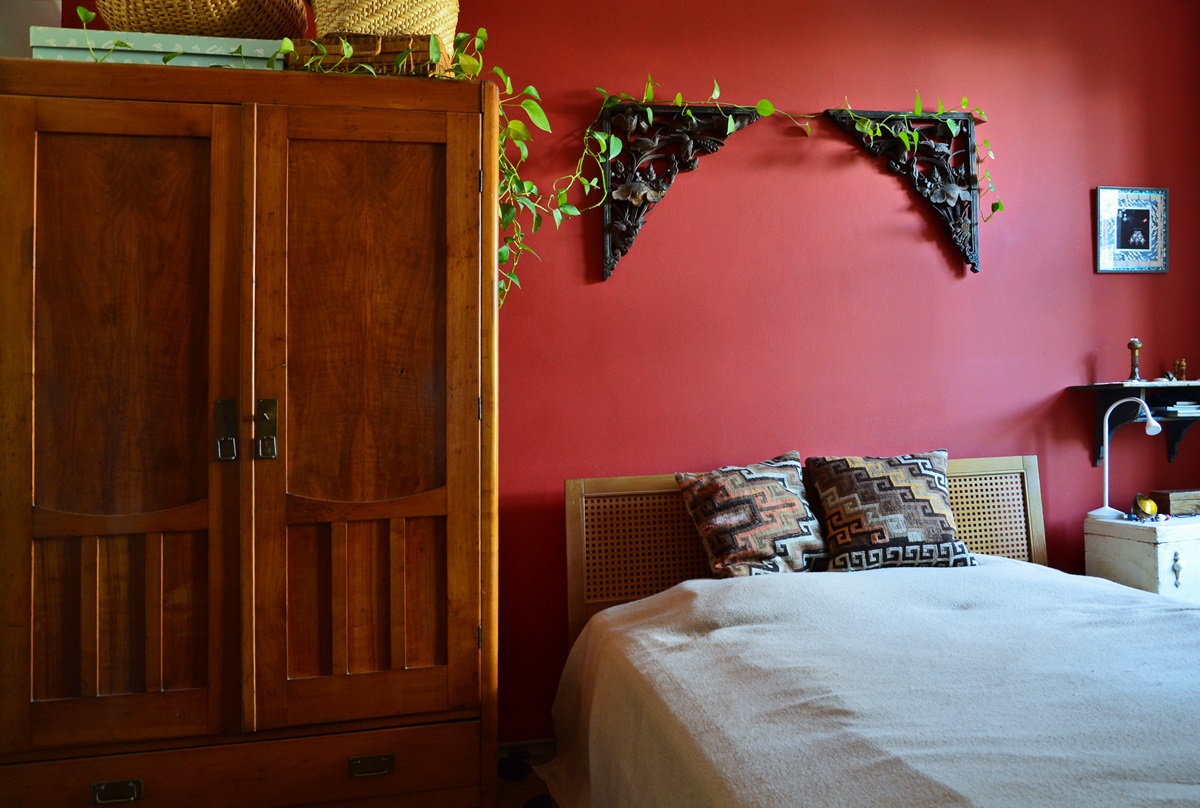 nappali egyik fala narancssárga lett, a hálóé terrakotta."