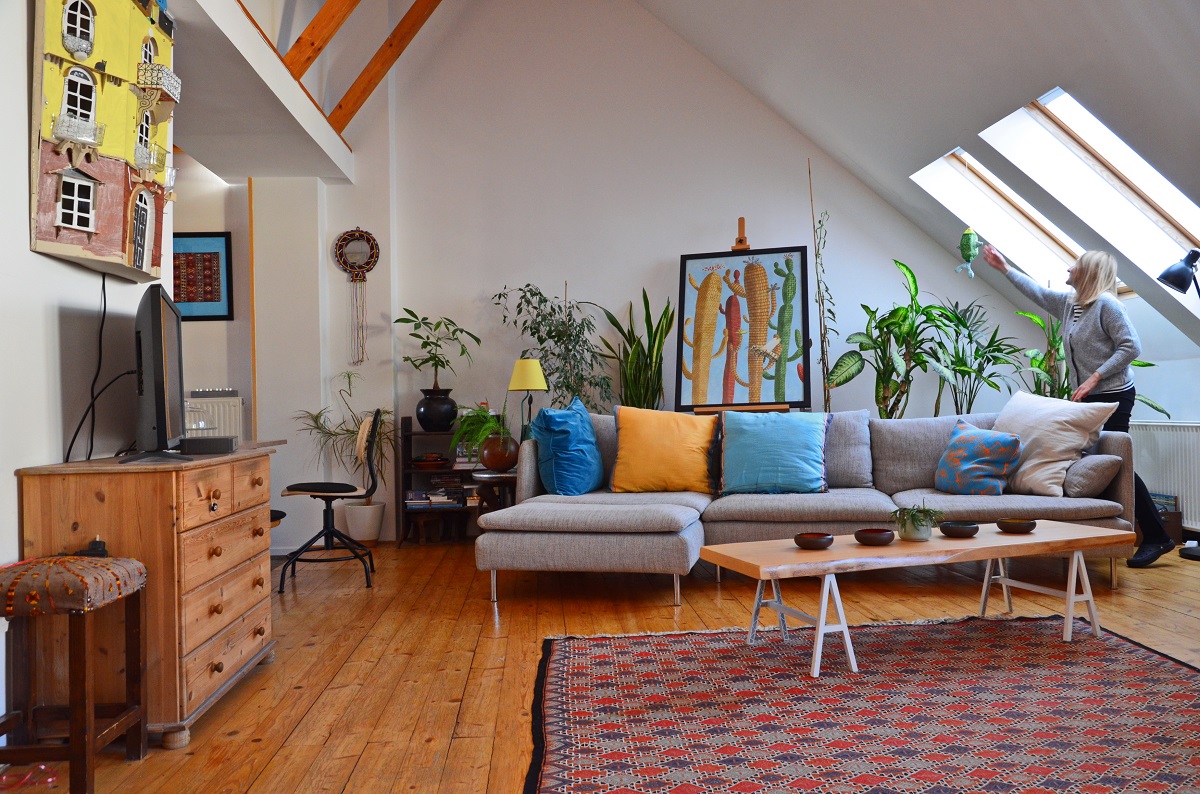 Három éve költöztünk ide, elég kalandosan: a covid járvány alatt, amikor mindenki bezárkózott. Azonnal megtetszett ez a jól megtervezett kilencvenes évekbeli tetőtér, nagy közösségi terekkel, intim zugokkal és terasszal, ahol még kertészkedni is lehet.