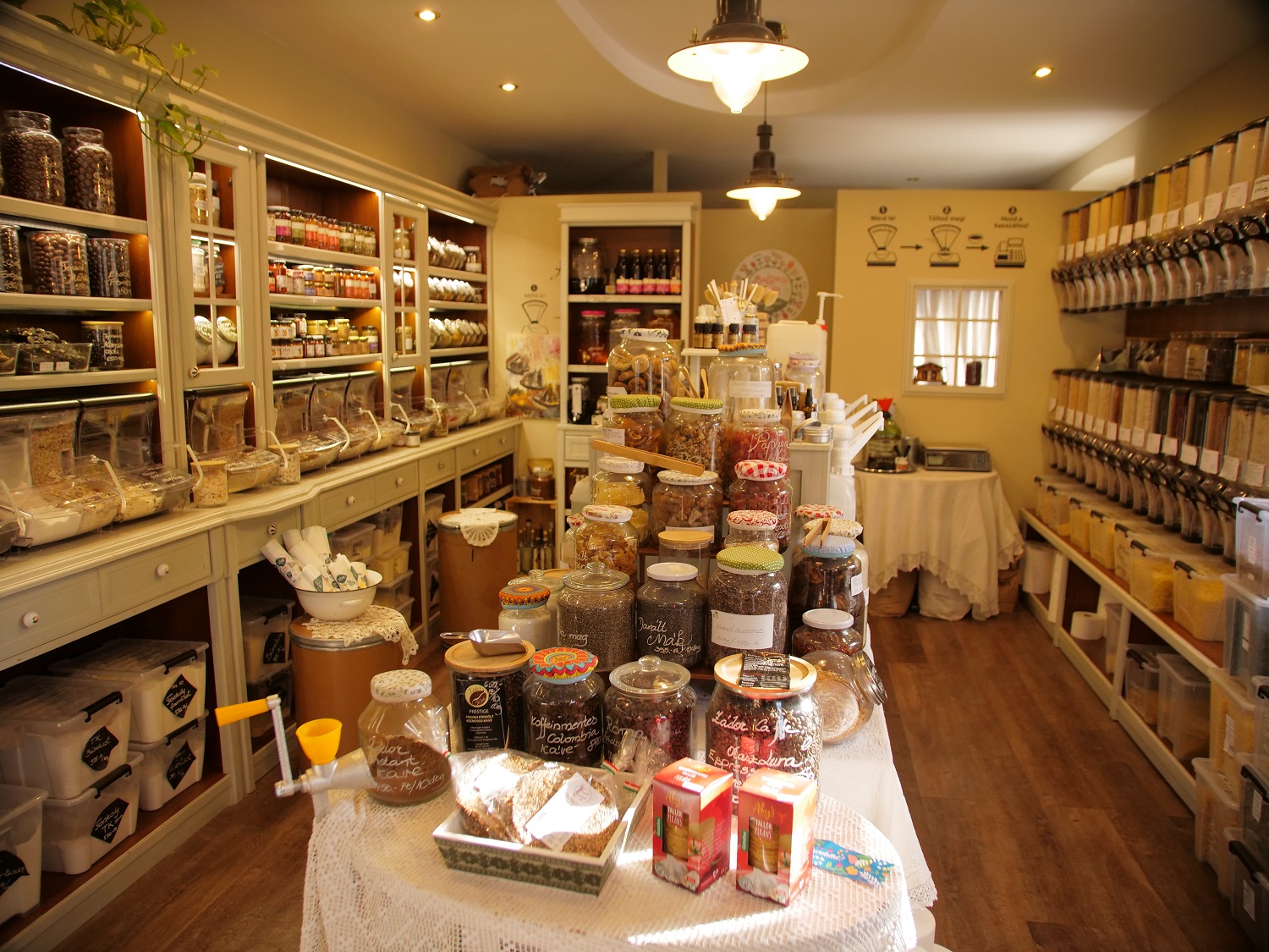 Dobozba be, dobozból ki – ennyi ennek a titka. Az eldobásra ítélt csomagolást ugyanis tökéletesen helyettesítik vödrök, cseretartók és szállítóballonok, melyek tényleg csak a futár szerepét töltik be: amint elér az üzletbe a termék, átkerül az ott tucatjával sorakozó tartók egyikébe, ahonnan a vásárló a saját kis vászonzsákjába töltve, maga tudja kiporciózni az éppen szükséges mennyiséget – és nem többet.